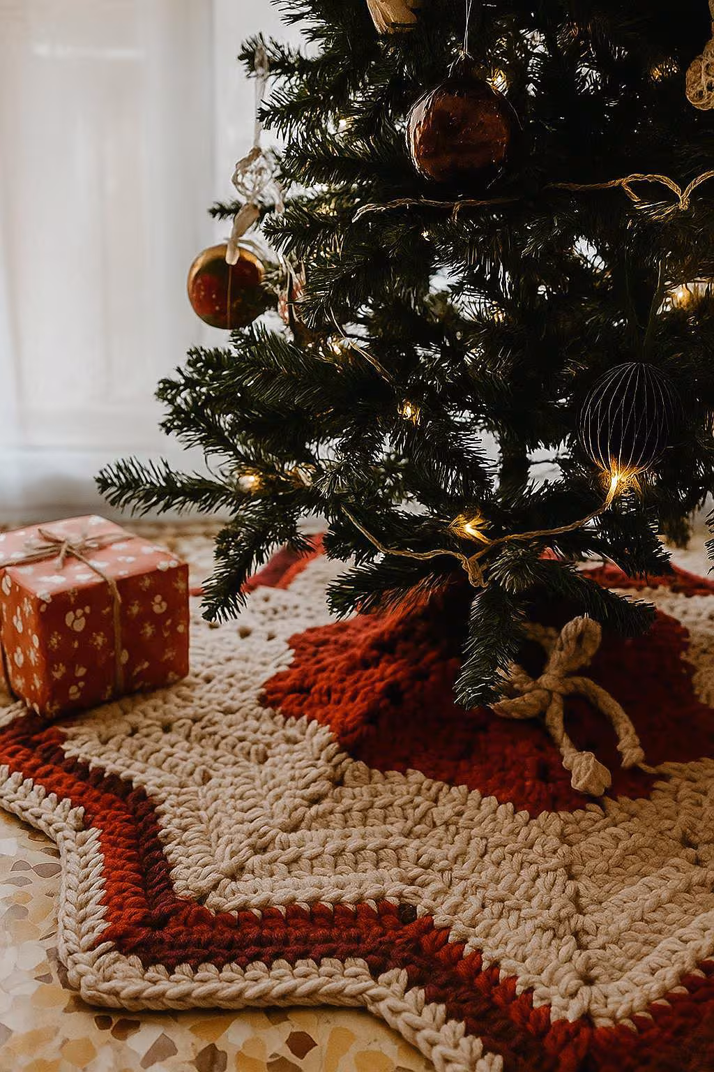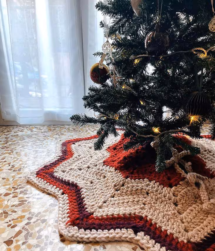 Chunky Crochet Christmas Tree Skirt Pattern PDF • Modern Rustic Holiday Decor • Star-wrap • Cozy Handmade Christmas Decoration